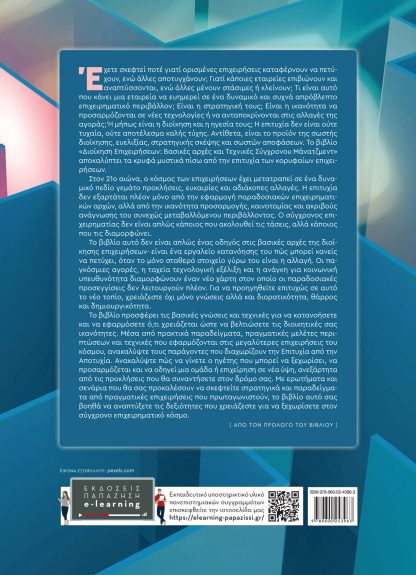 Έχετε σκεφτεί ποτέ γιατί ορισμένες επιχειρήσεις καταφέρνουν να πετύχουν, ενώ άλλες αποτυγχάνουν; Γιατί κάποιες εταιρείες επιβιώνουν και αναπτύσσονται, ενώ άλλες μένουν στάσιμες ή κλείνουν; Τι είναι αυτό που κάνει μια εταιρεία να ευημερεί σε ένα δυναμικό και συχνά απρόβλεπτο επιχειρηματικό περιβάλλον; Είναι η στρατηγική τους; Είναι η ικανότητα να προσαρμόζονται σε νέες τεχνολογίες ή να ανταποκρίνονται στις αλλαγές της αγοράς; Ή μήπως είναι η διοίκηση και η ηγεσία τους; Η επιτυχία δεν είναι ούτε τυχαία, ούτε αποτέλεσμα καλής τύχης. Αντίθετα, είναι το προϊόν της σωστής διοίκησης, ευελιξίας, στρατηγικής σκέψης και σωστών αποφάσεων. Το βιβλίο «Διοίκηση Επιχειρήσεων: Βασικές αρχές και Τεχνικές Σύγχρονου Μάνατζμεντ» αποκαλύπτει τα κρυφά μυστικά πίσω από την επιτυχία των κορυφαίων επιχειρήσεων.