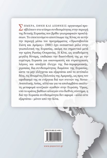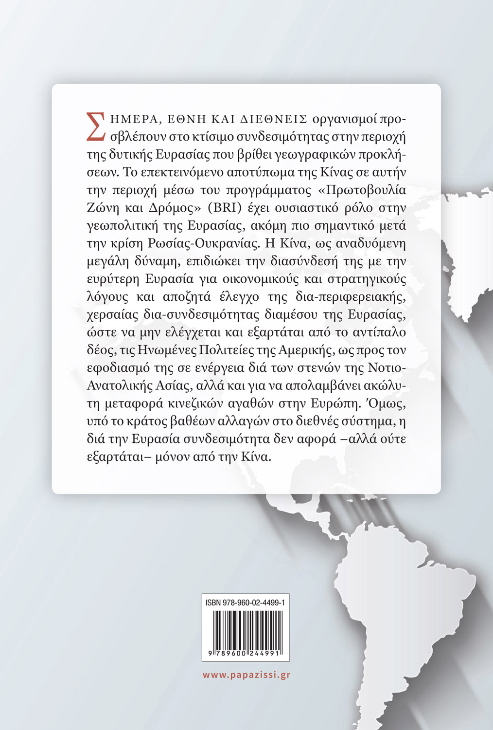 Σήμερα, έθνη και διεθνείς οργανισμοί προσβλέπουν στο κτίσιμο συνδεσιμότητας στην περιοχή της δυτικής Ευρασίας που βρίθει γεωγραφικών προκλήσεων. Το επεκτεινόμενο αποτύπωμα της Κίνας σε αυτήν την περιοχή μέσω του προγράμματος «Πρωτοβουλία Ζώνη και Δρόμος» (BRI) έχει ουσιαστικό ρόλο στην γεωπολιτική της Ευρασίας, ακόμη πιο σημαντικό μετά την κρίση Ρωσίας-Ουκρανίας. Η Κίνα, ως αναδυόμενη μεγάλη δύναμη, επιδιώκει την διασύνδεσή της με την ευρύτερη Ευρασία για οικονομικούς και στρατηγικούς λόγους και αποζητά έλεγχο της δια-περιφερειακής, χερσαίας δια-συνδεσιμότητας διαμέσου της Ευρασίας, ώστε να μην ελέγχεται και εξαρτάται από το αντίπαλο δέος, τις Ηνωμένες Πολιτείες της Αμερικής, ως προς τον εφοδιασμό της σε ενέργεια δια των στενών της Νοτιο-Ανατολικής Ασίας, αλλά και για να απολαμβάνει ακώλυτη μεταφορά κινεζικών αγαθών στην Ευρώπη. Όμως, υπό το κράτος βαθέων αλλαγών στο διεθνές σύστημα, η διά την Ευρασία συνδεσιμότητα δεν αφορά −αλλά ούτε εξαρτάται− μόνον από την Κίνα.