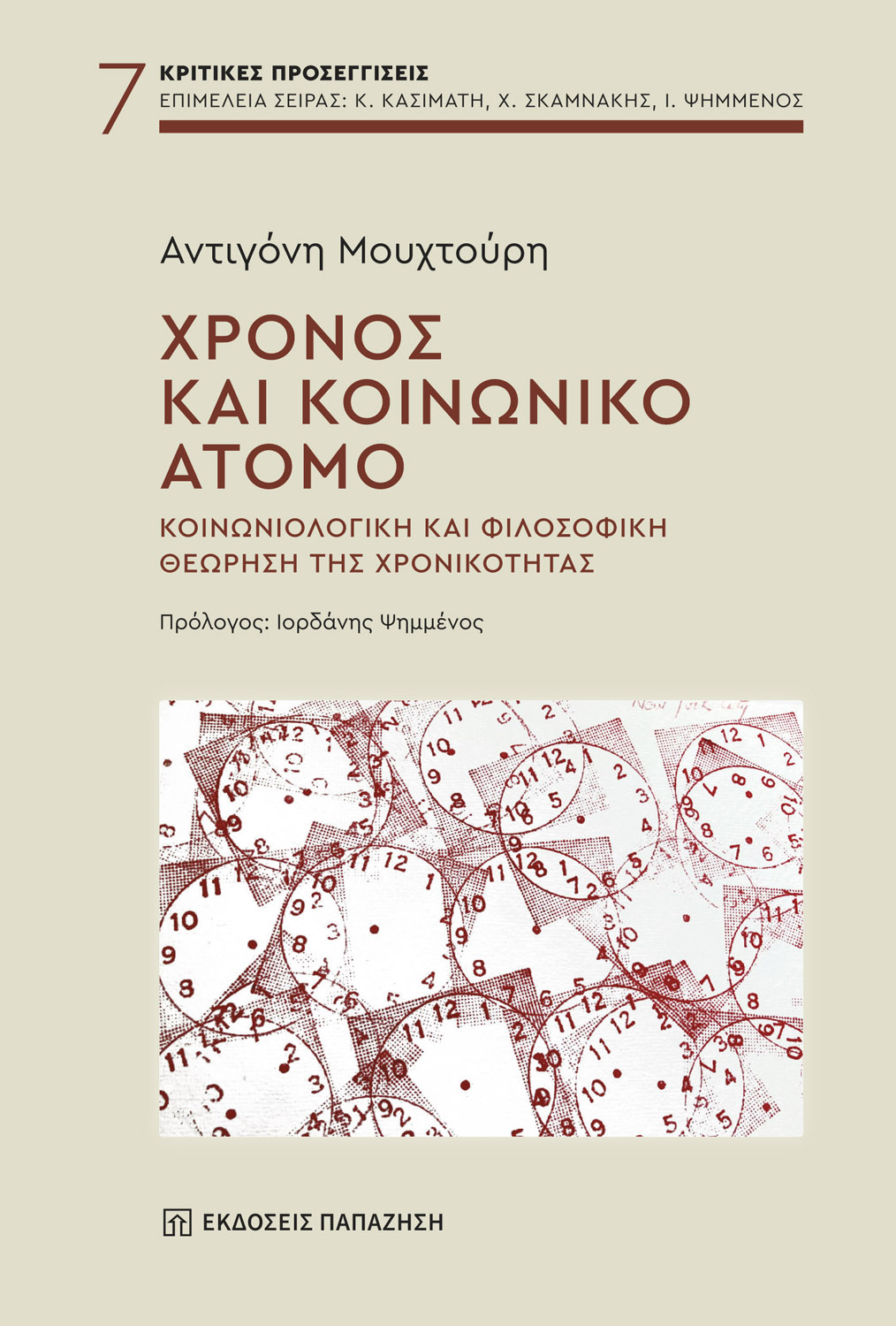 Σε μια εποχή όπου ο χρόνος βιώνεται ολοένα περισσότερο ως πίεση, έλλειψη ή ταχύτητα, η Αντιγόνη Μουχτούρη επανεξετάζει τη χρονικότητα ως ένα θεμελιώδες στοιχείο της κοινωνικής συμπεριφοράς και της κοινωνικής κρίσης του ατόμου. Θέτει τον χρόνο στο επίκεντρο μιας διεπιστημονικής διερεύνησης που διασταυρώνει την κοινωνιολογία με την κοινωνική φιλοσοφία.